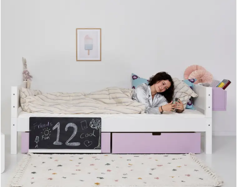Huxie white mid-height children's bed - with the option of a colored safety rail