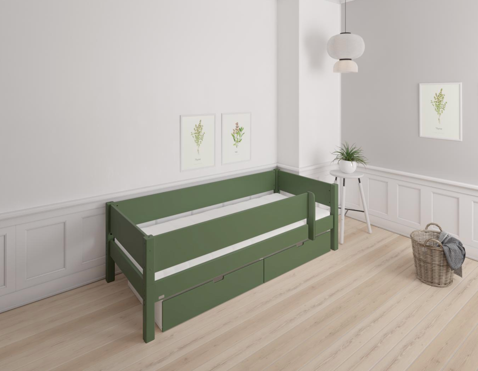 Mimer starter bed with safety railsl and drawers