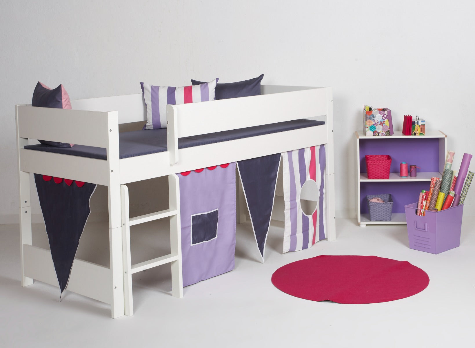 Our play curtain is made for our Huxie mid-height bed, bed with slide and bunk beds. Create a cozy den under the bed with this curtain.