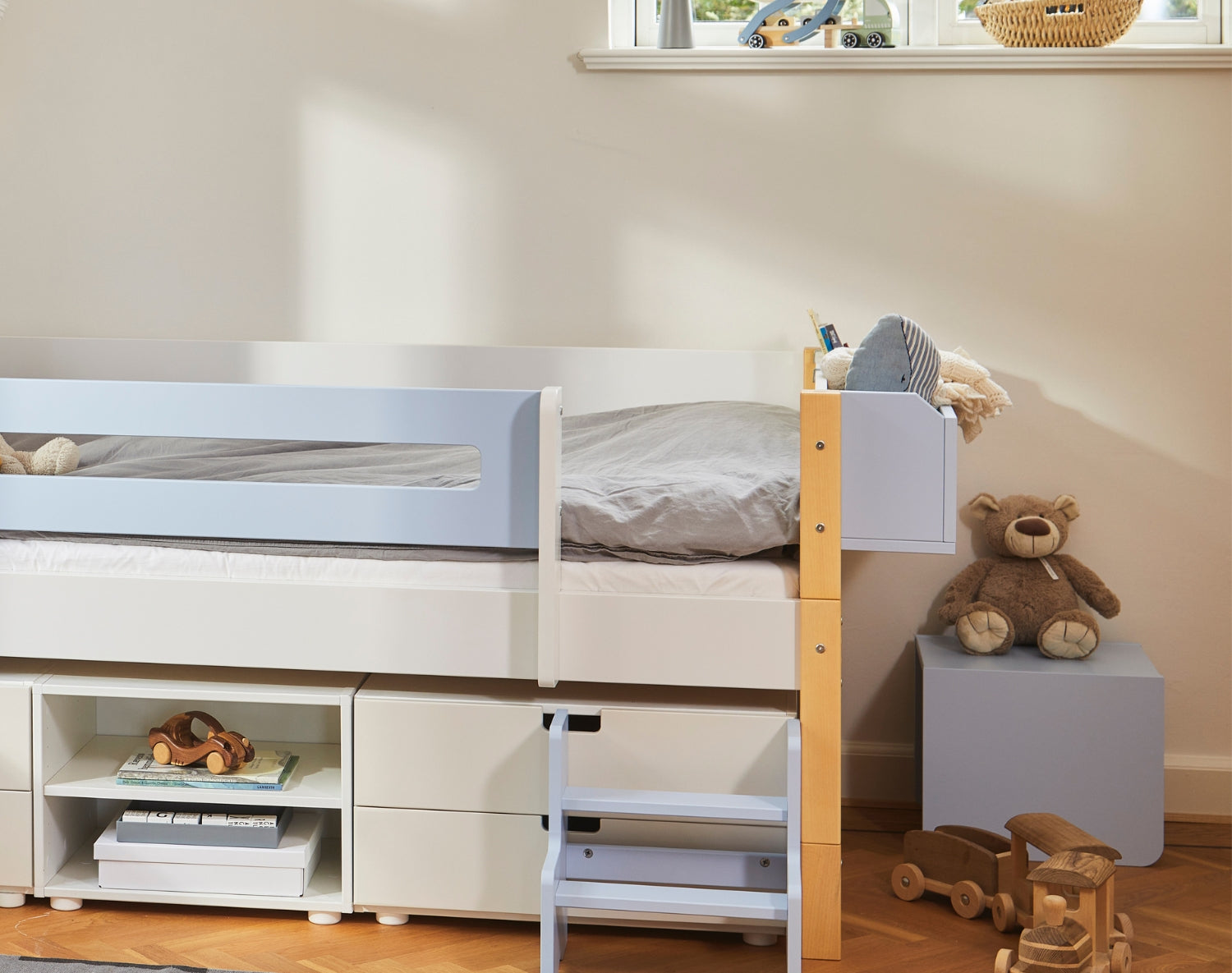 - Pay attention to the mattress height in relation to the bed rail/side – we note this clearly so that your child always sleeps safely.