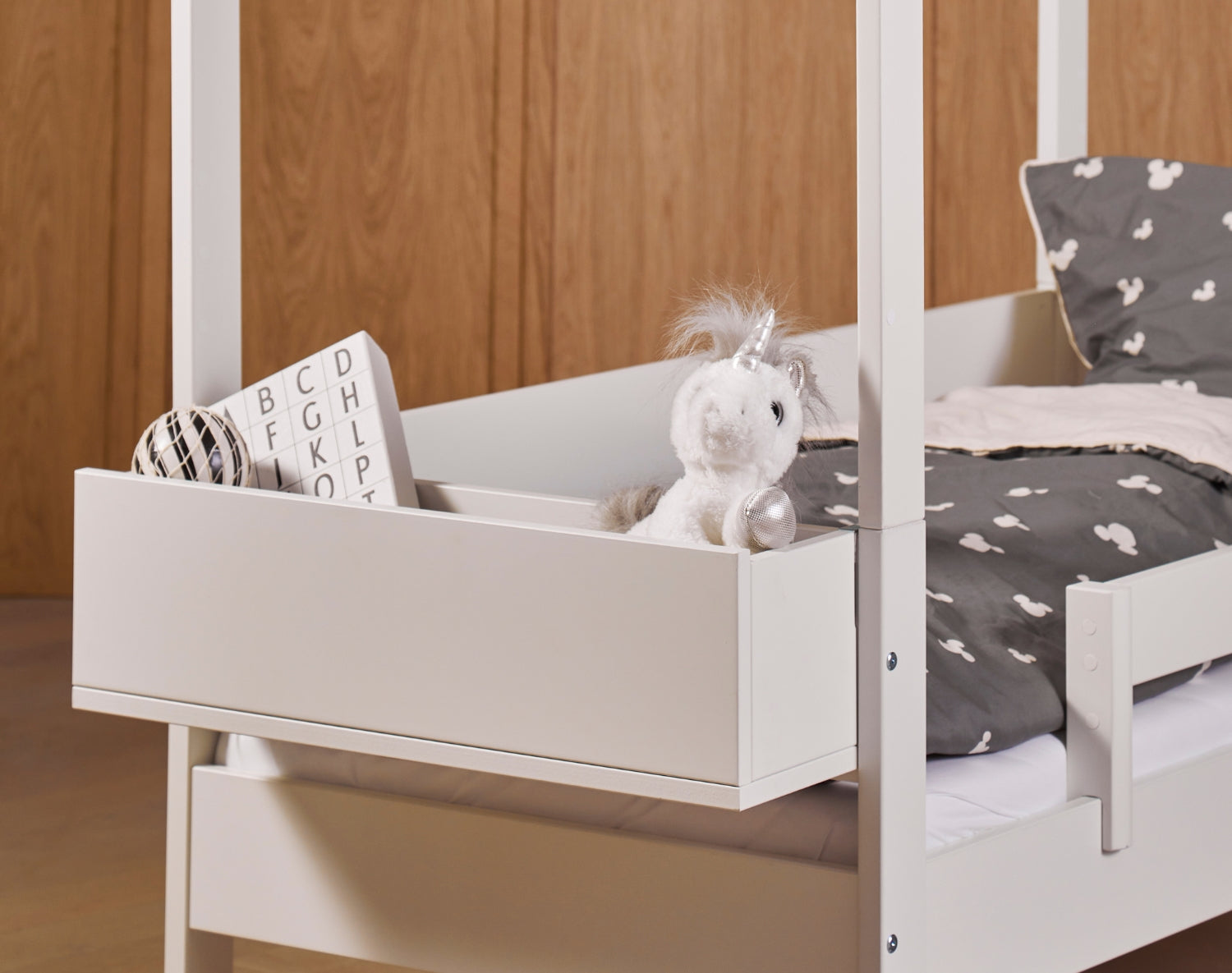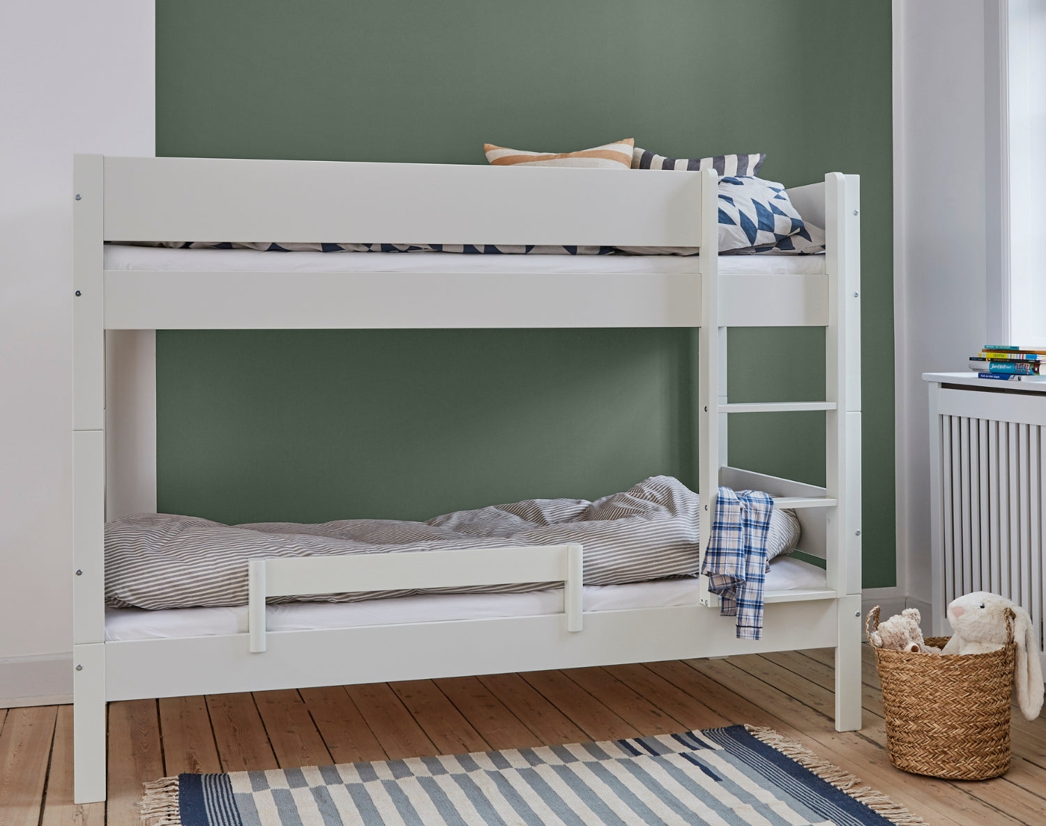 With a Huxie bunk bed you don't have to worry about safety or durability. The beds have been tested and approved by the Danish Technological Institute according to current European standards for both safety, materials and surfaces. The bed legs are made of solid beech wood painted with an environmentally friendly and harmless white paint. The bed sides and bed rails are made of 19 mm painted MDF.