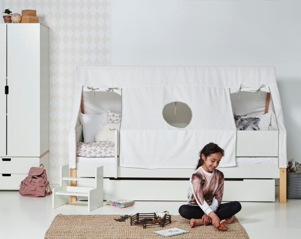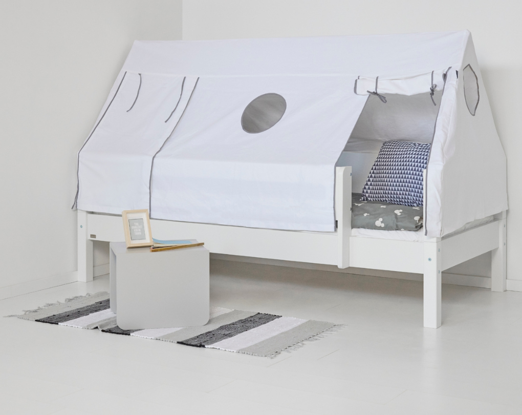 Fulla is a house bed with a beech frame and cotton canopy, so you can create a cozy space in your bed. The bed comes in sizes 160 cm and 200 cm.