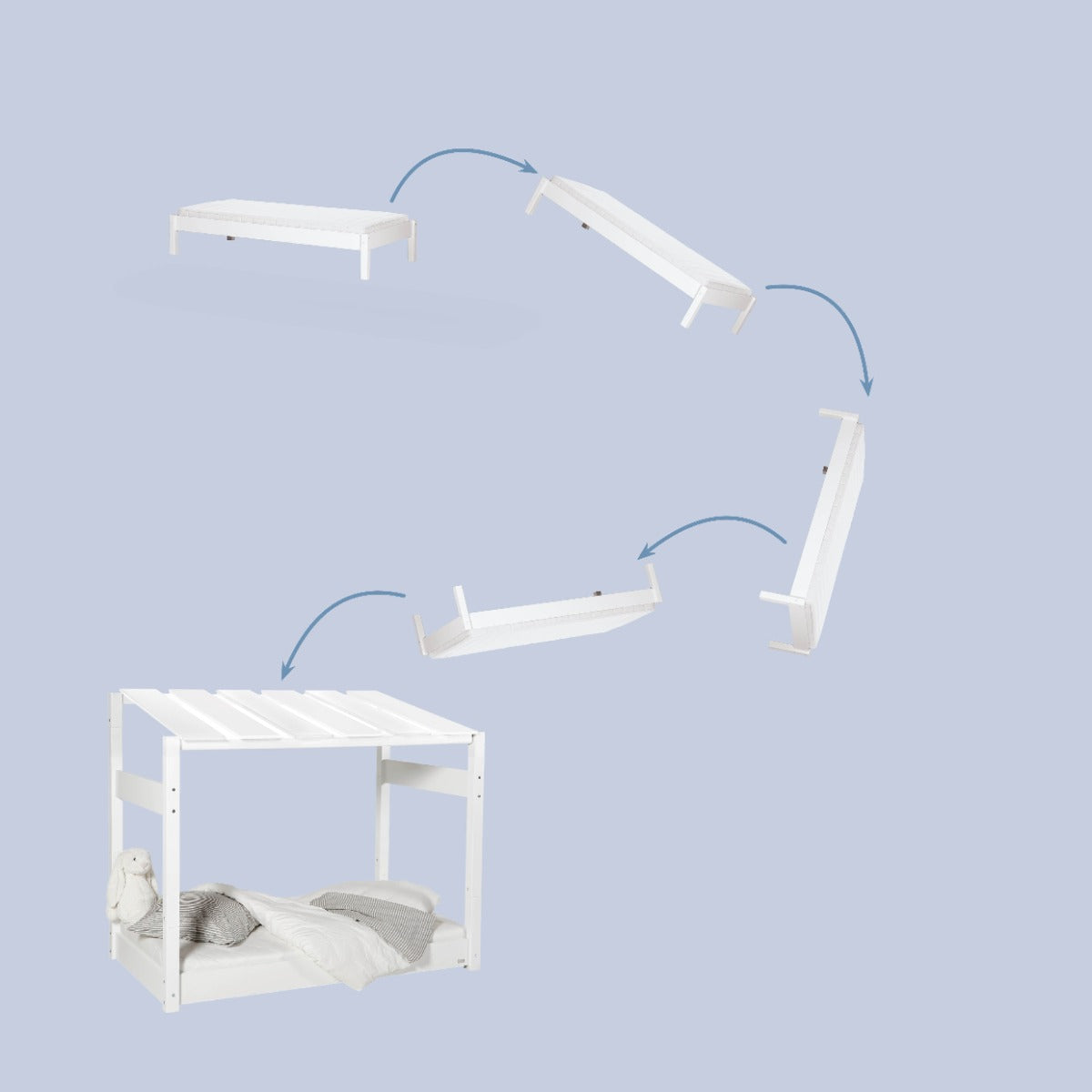 Make the transition from a baby bed safe and cozy with a house bed that invites both peace and play. Perfect as the first real bed – and with the option to expand as the child grows.