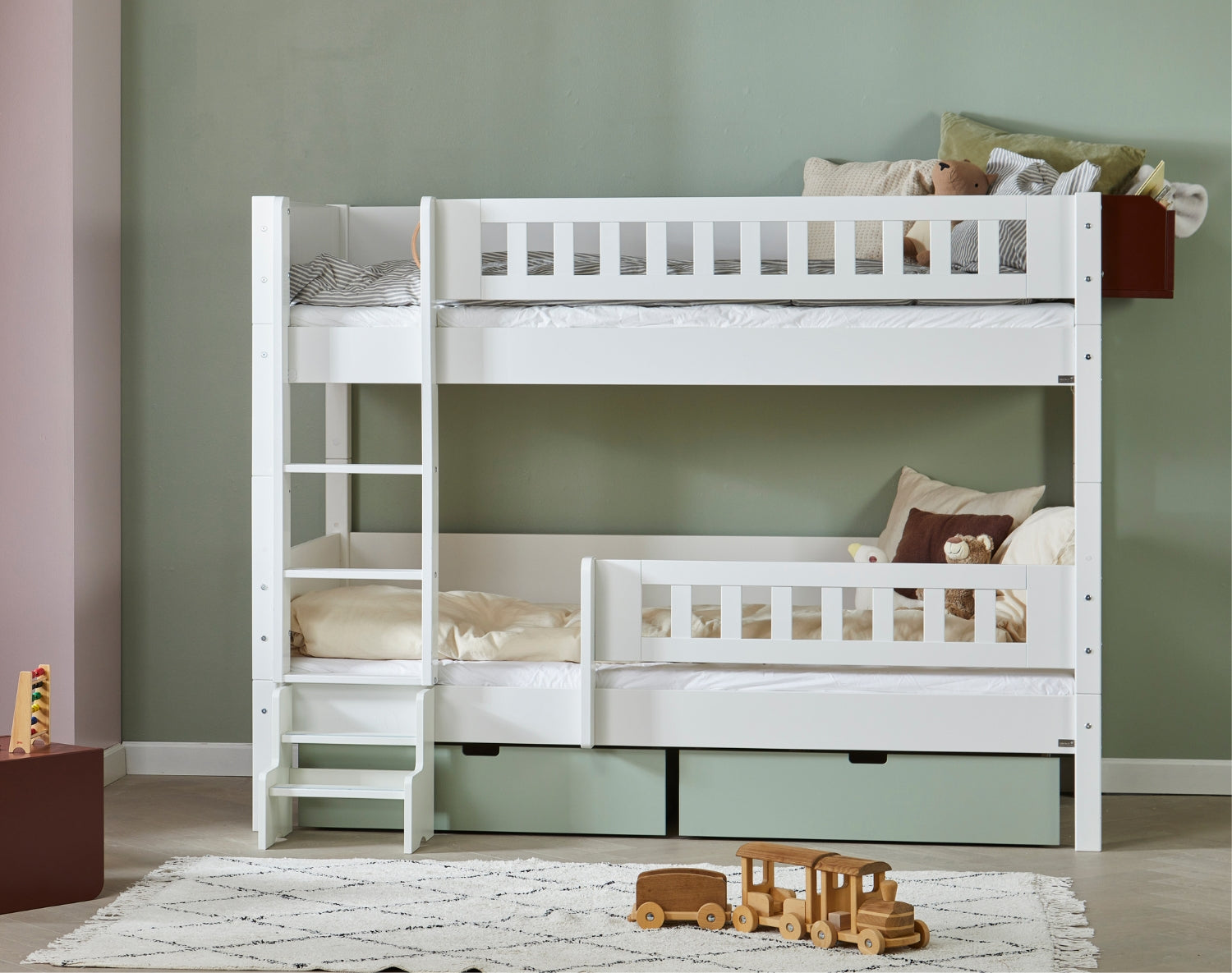 Hoder is a beautiful and functional bunk bed with both a side rail and backrest – designed for families where space needs to be used wisely. It is perfect for siblings sharing a room, or for a child's room where there are often overnight guests.
