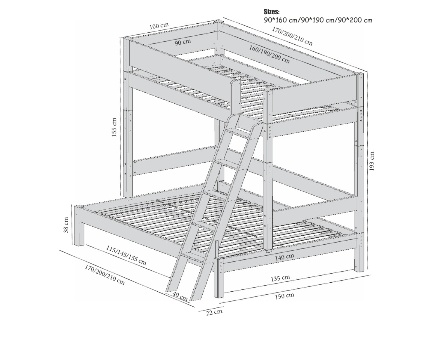 Family Combi bunk bed Vale – space for both child and parents in one cozy bed solution