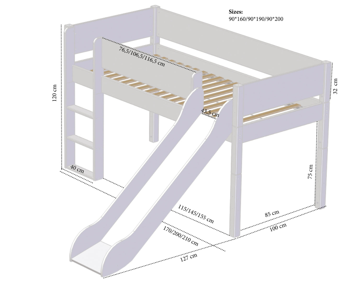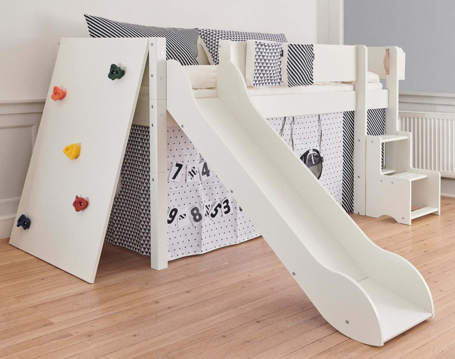Loke is a mid-height bed with a slide , created for children who love speed and imagination – and for parents who want a safe, functional and beautiful solution for their children's room. It combines play and sleep in one harmonious frame, where your child can feel both free and safe.