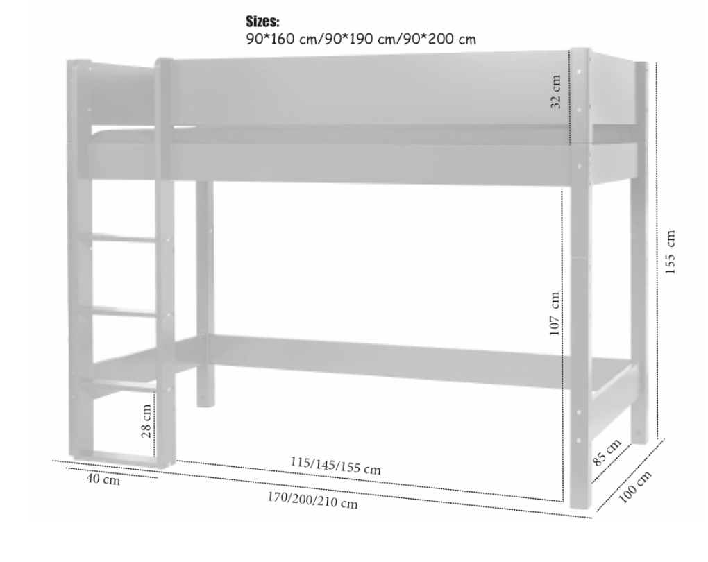Conversion kit - Open bunk bed for medium-high bed 90*200 cm.