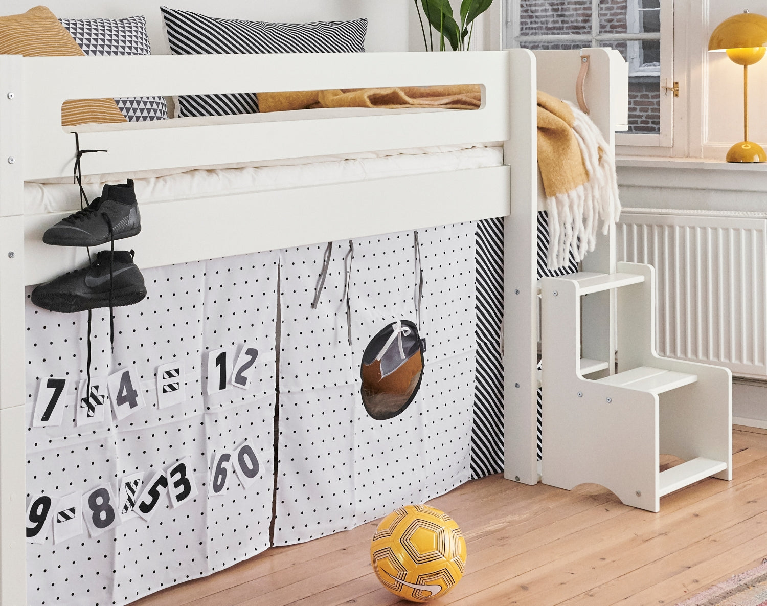 Designed to fit junior beds and bunk beds with pull-out beds, but can also be used as a stand-alone ladder. Choose between a low or high version and get extra safety with the included non-slip tape.