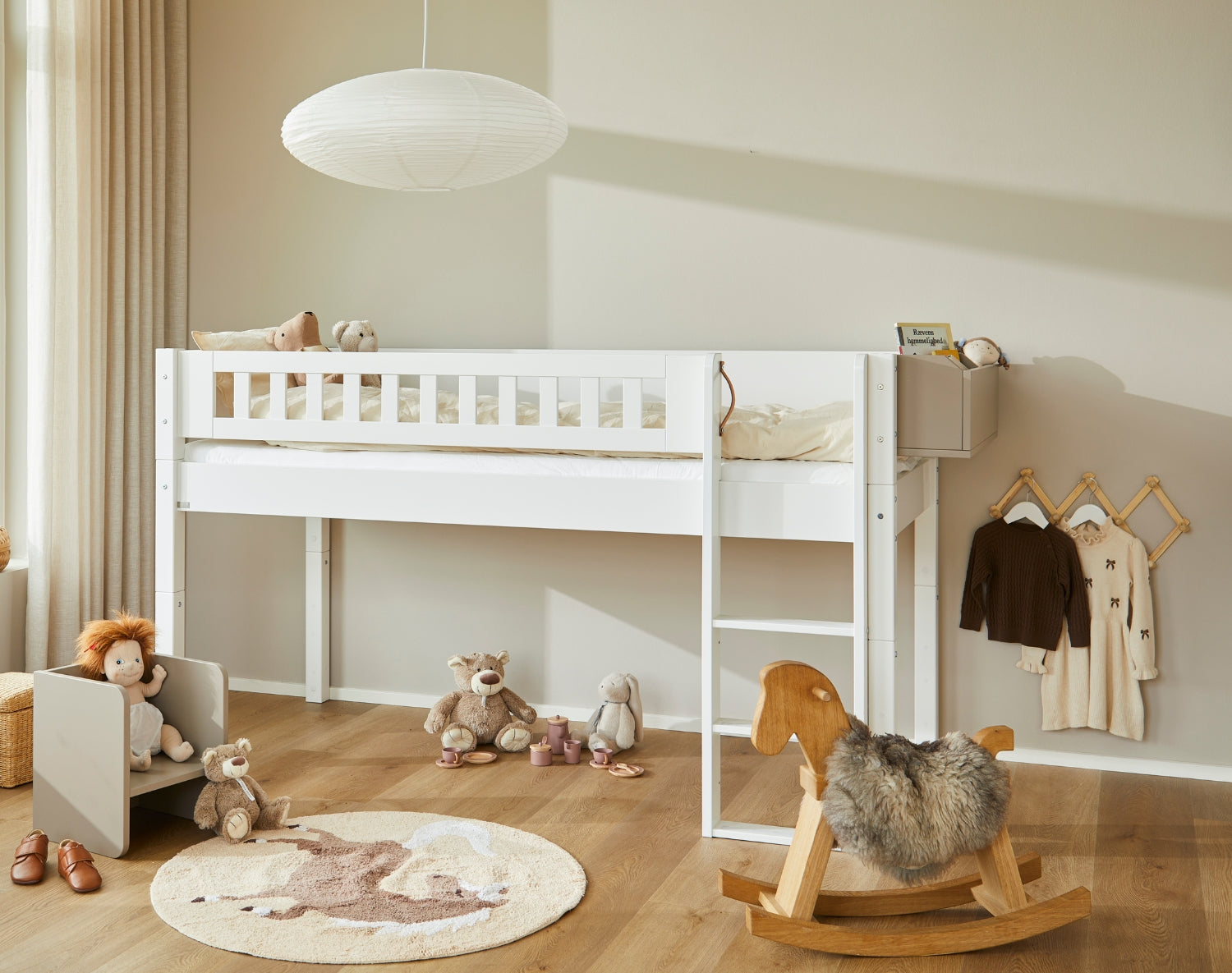 - Pay attention to the mattress height in relation to the bed rail/side – we note this clearly so that your child always sleeps safely.
