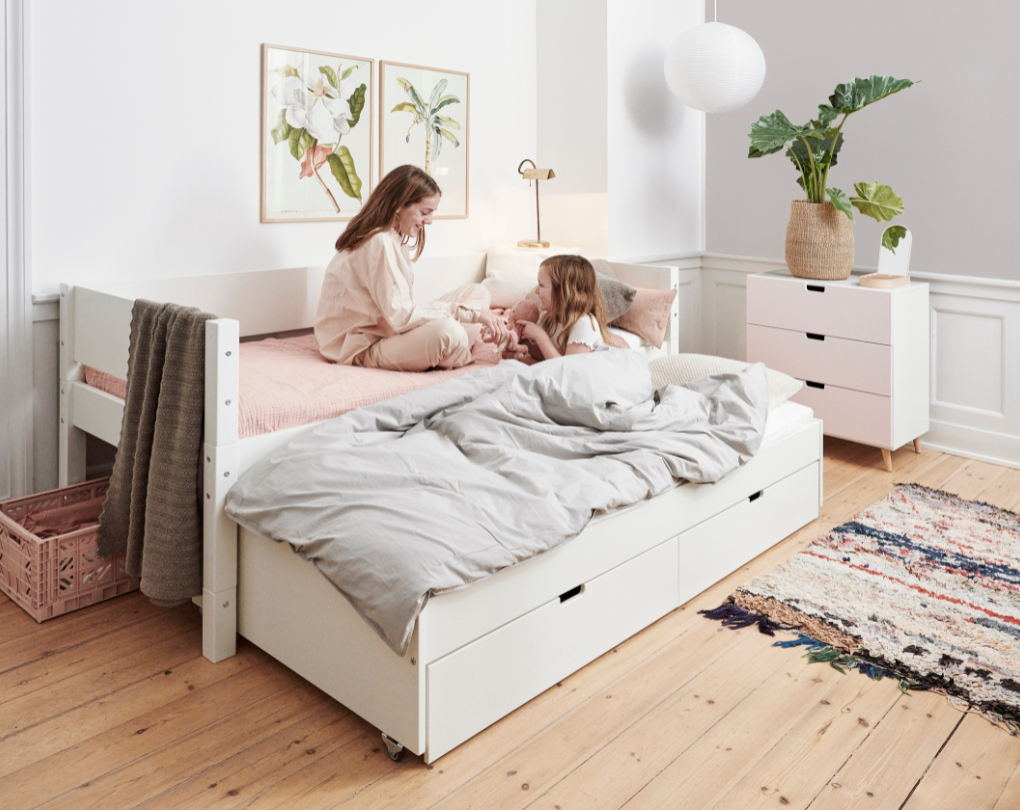 The bed drawers are available in both high and low versions, so you can choose the solution that best suits your family's needs and your child's room. They are easy to pull out and in, and at the same time they are a stylish way to keep the room tidy and organized.