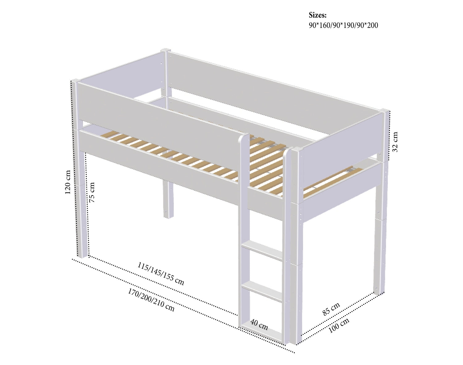 - Pay attention to the mattress height in relation to the bed rail/side – we note this clearly so that your child always sleeps safely.