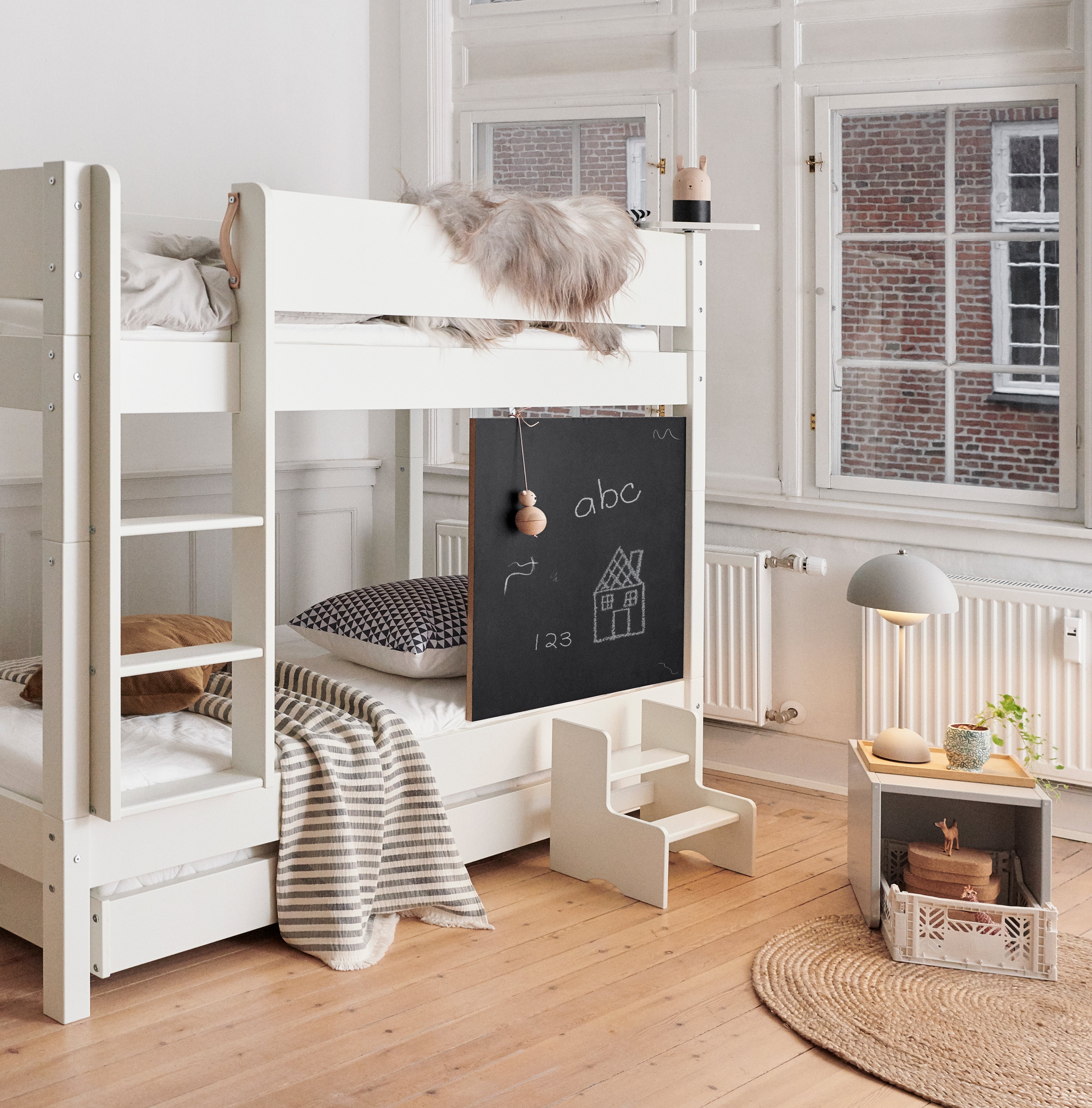 The bunk bed provides two comfortable sleeping places and is an obvious solution for siblings, friends staying overnight or guests. The calm design and clean lines create a safe and harmonious framework for the child's sleep, while the bed fits naturally into a modern Nordic interior.