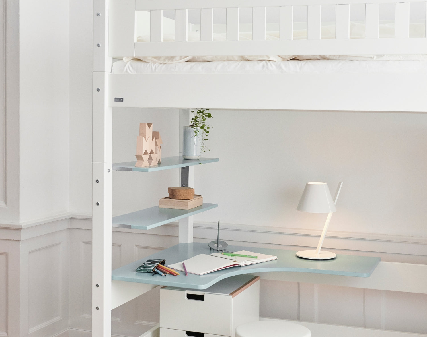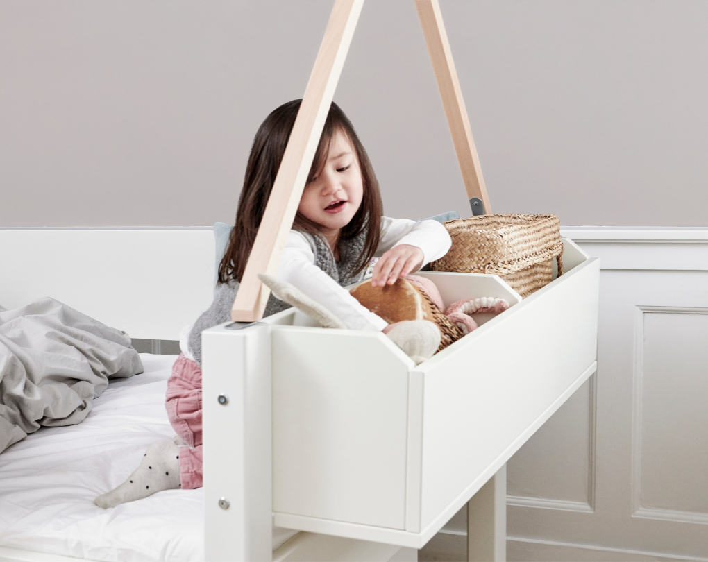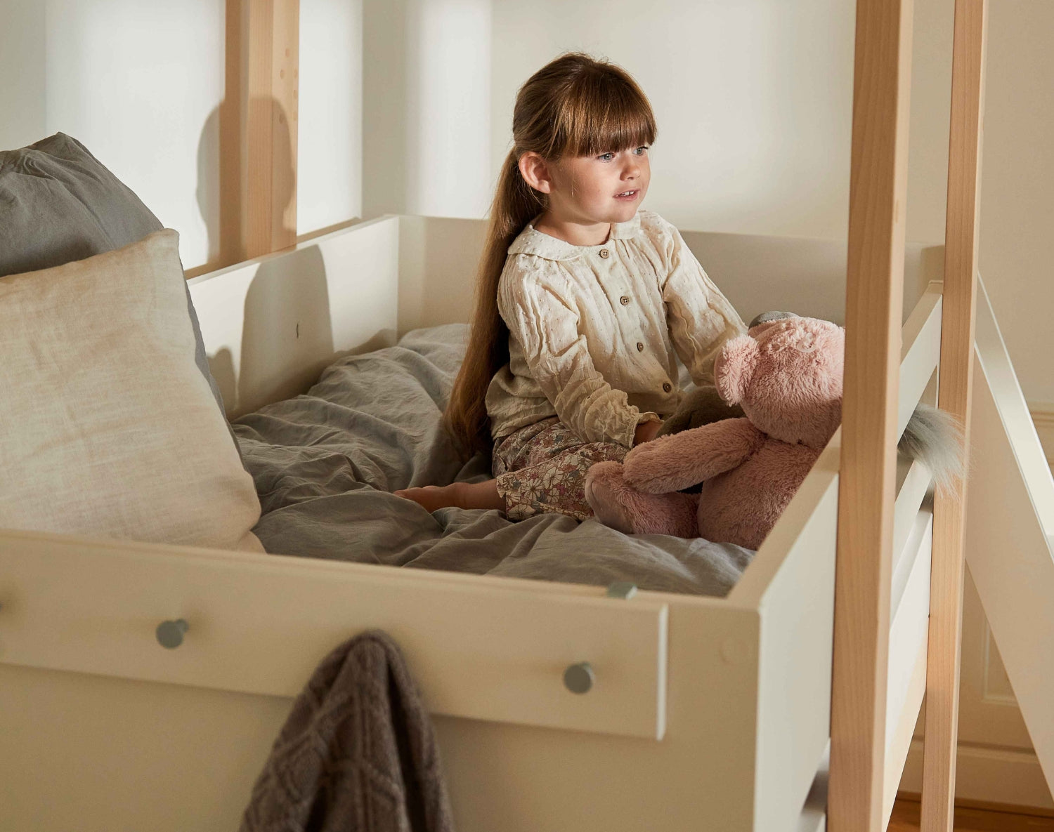 With the right accessories for the bed, the children's room can be transformed into much more than a place to sleep. At Manis-h you will find a wide selection of solutions that make the bed both safe, functional and full of opportunities for play and coziness. Here you can choose practical details such as bed shelves that keep books and small items close at hand, or bed drawers that provide extra storage and make it easy to keep the room tidy. Bed rails create extra security in the first years, while ladders give the child free access to semi-high and high beds. For the more creative and playful universes, we also offer bed caves, boards and pillows that turn the bed into a place where imagination can flourish and where the child can find their very own free space. What is special about the accessories is that they make the bed flexible and changeable. With small adjustments, you can create new functions and expressions so that the bed always suits the child's age and everyday life. With accessories for the bed from Manis-h, you don't just get extra equipment - but well-thought-out solutions that combine comfort, functionality and play, giving the child a bed that can be used in many ways throughout their growth.