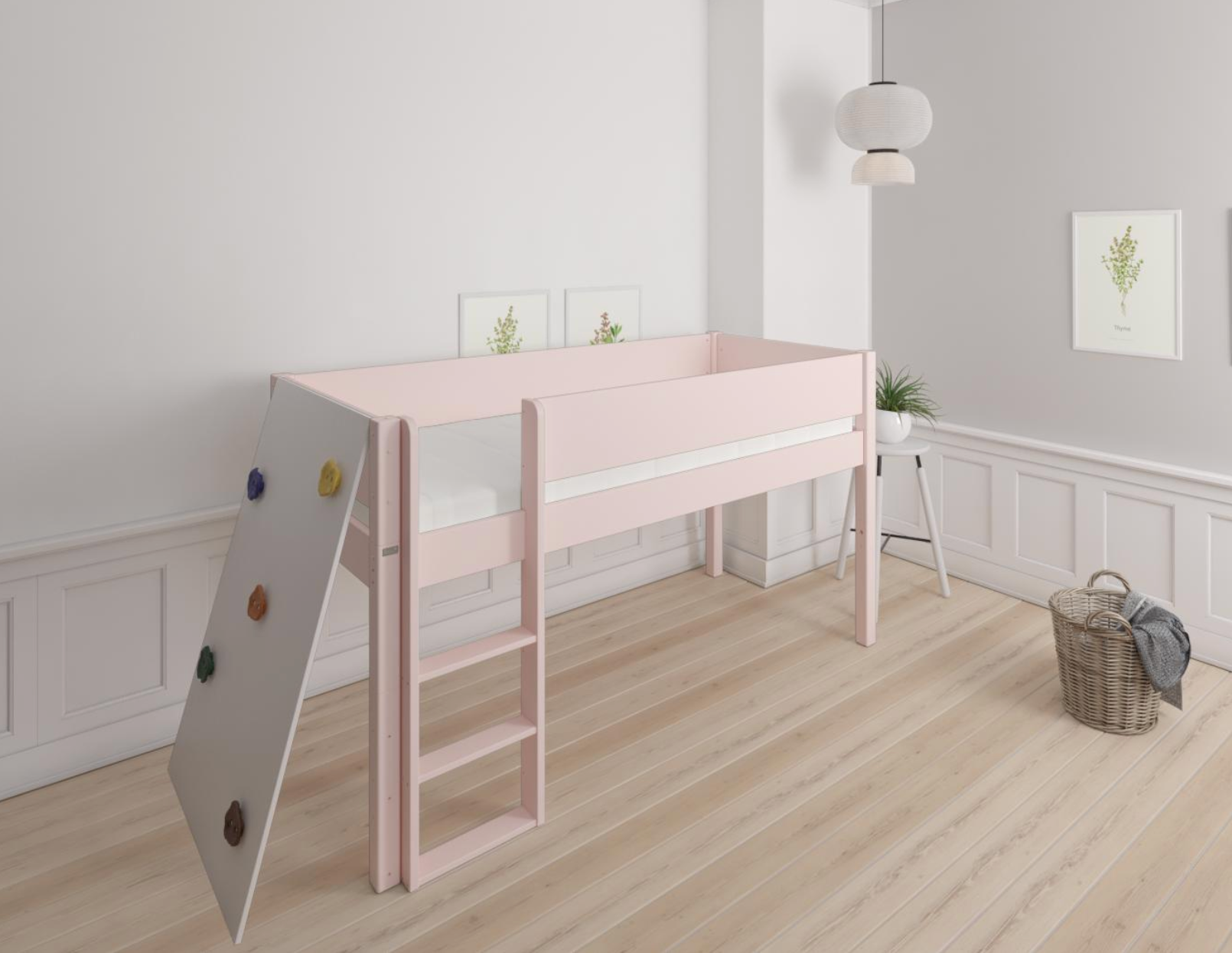 Borr half-height children's bed with climbing wall - height bed with climbing wall - 90*160cm - Light rose - 24