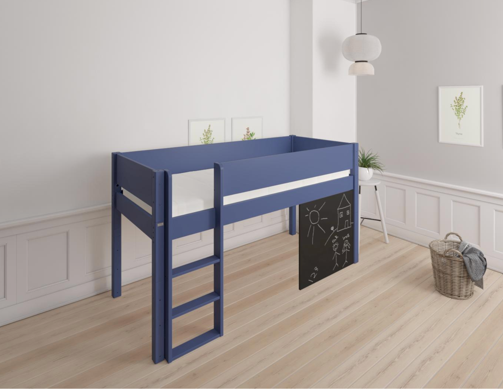 Dea half-height children's bed with chalkboard - 90*160cm - Denim blue - 21