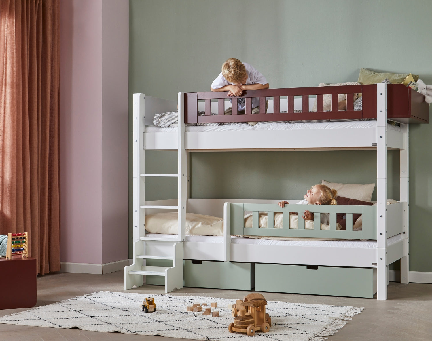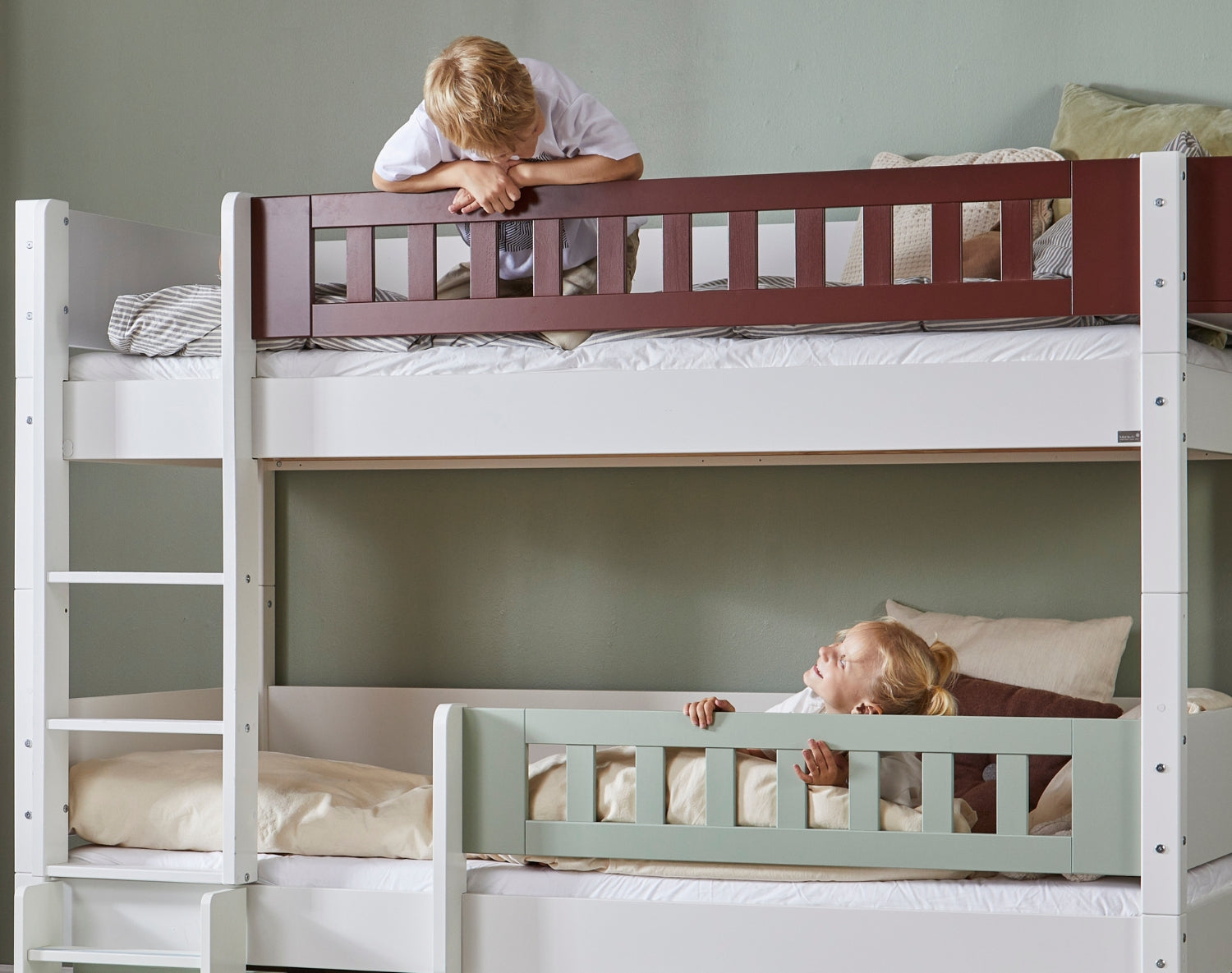 When the children's room needs to accommodate both sleep, play and socializing, the Hoder bunk bed is the ideal solution. A beautiful and functional bunk bed with both a side rail and backrest (backrest on both the upper and lower bunk) – designed with consideration for families where the space must be utilized with love and creativity.