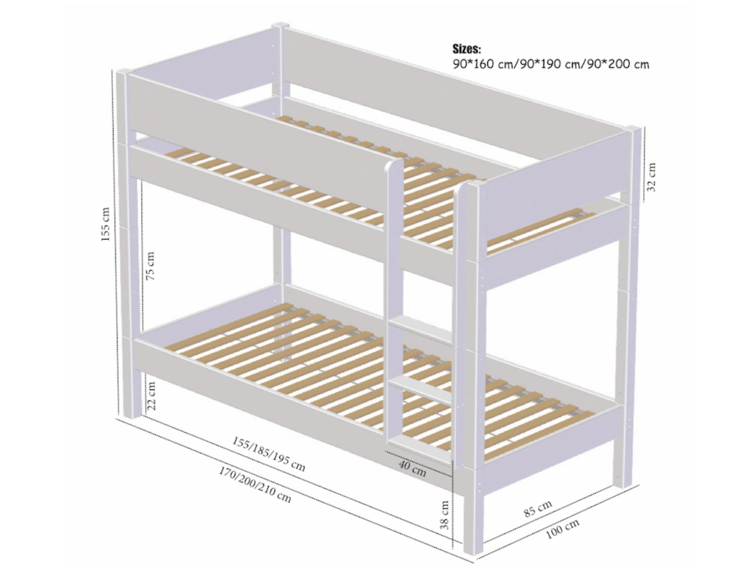 - Pay attention to the mattress height in relation to the bed rail/side – we note this clearly so that your child always sleeps safely.