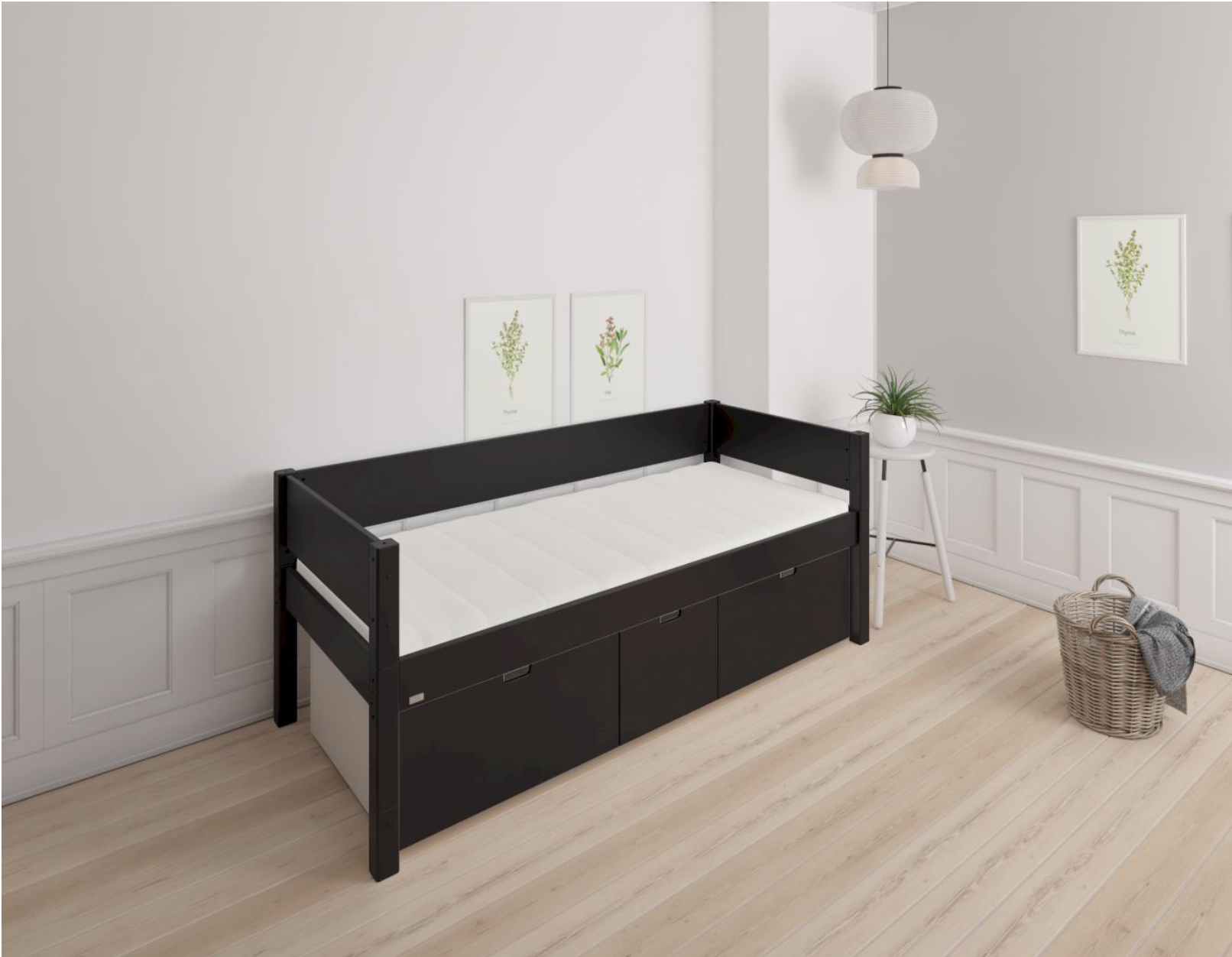 Nanna children's bed with high drawers - 90*160cm - Black - 39