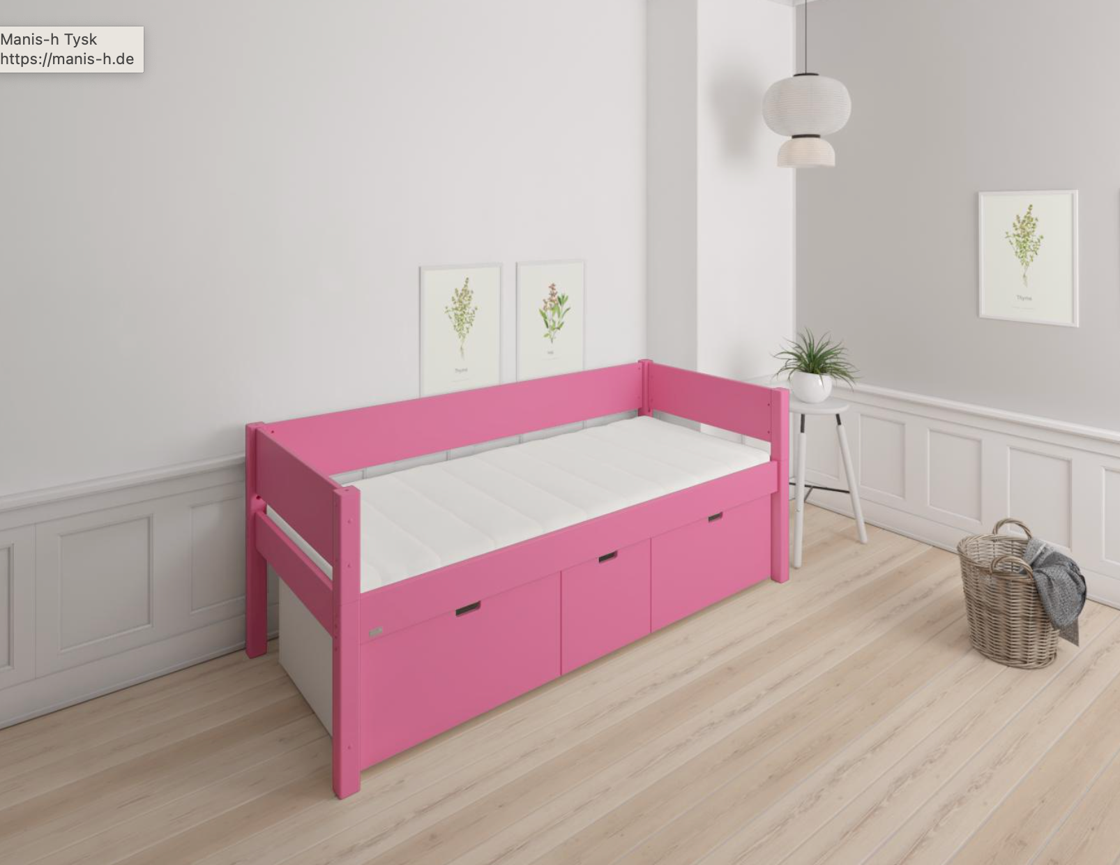 Nanna children's bed with high drawers - 90*160cm - Pink - 32