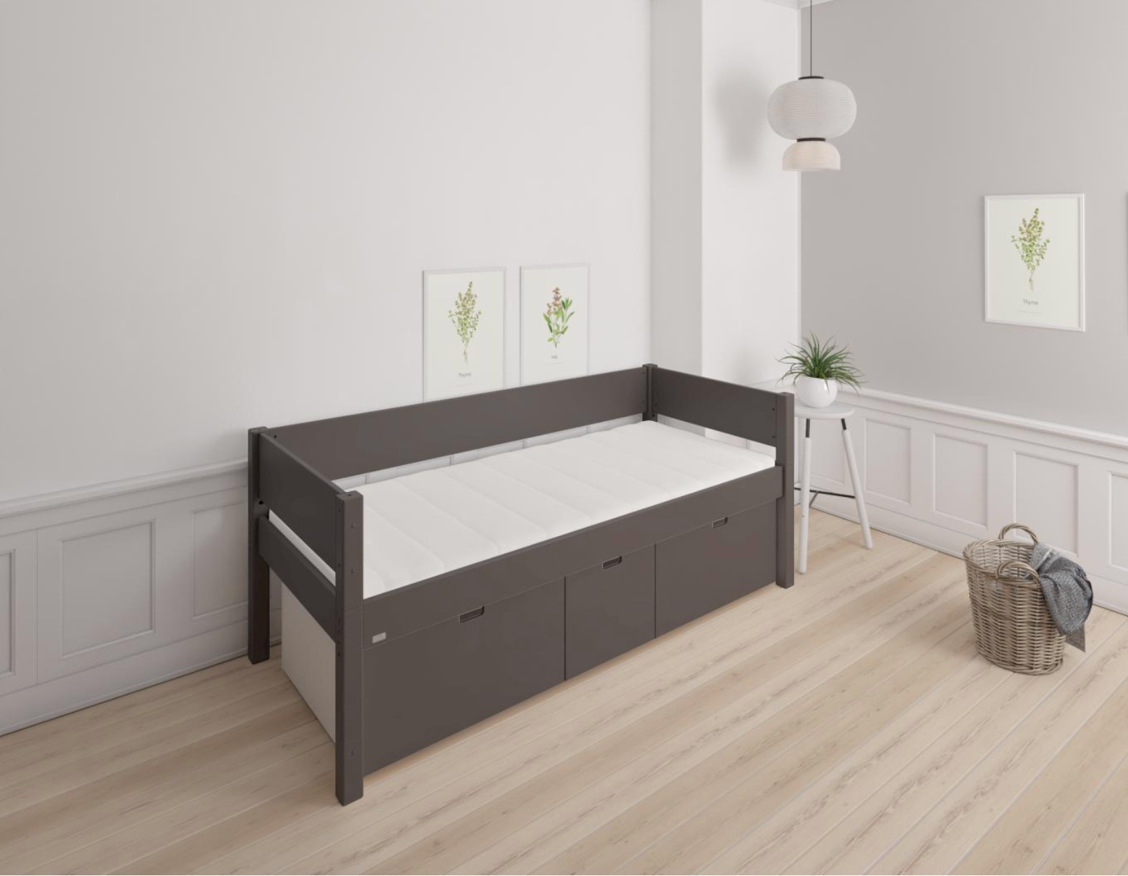 Nanna children's bed with high drawers - 90*200cm - Anthracite - 2