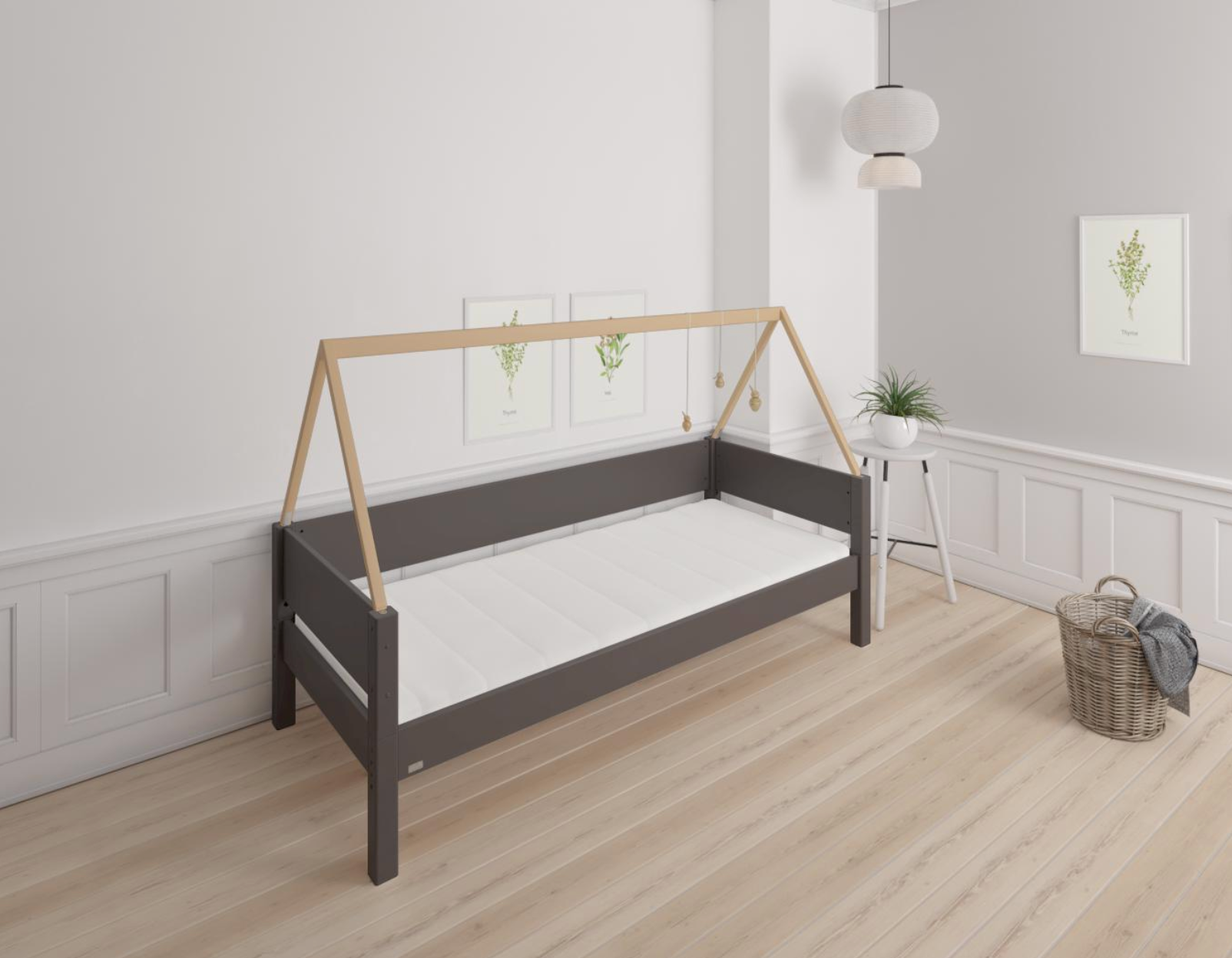 Saga children's bed with beech bed frame - 90*160cm - Anthracite - 2